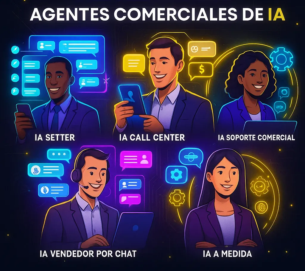 Implementamos Agentes de Inteligencia Artificial que prospectan, atienden llamadas, venden por chat y dan soporte a tus clientes, como un equipo humano… pero más rápido, más barato y siempre disponible.